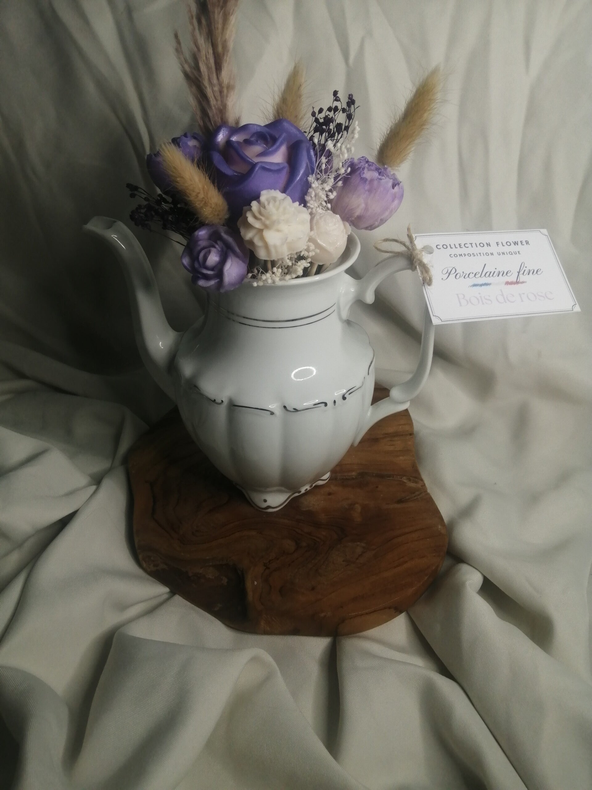 Des compositions florales qui durent dans le temps, réalisées en cire de soja et délicatement parfumées aux fragrances de Grasse.